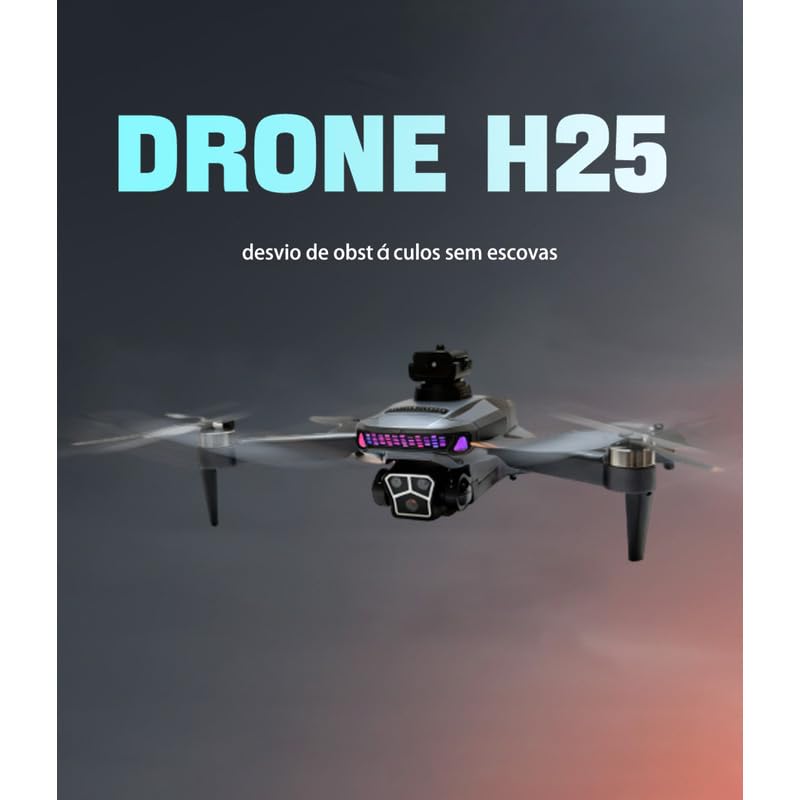 Drone H25 Câmera Dupla com Motor Brushless – Sensor de Obstáculos, 3 Baterias, Controle 80m, Ideal Fotos e Vídeos Aéreos