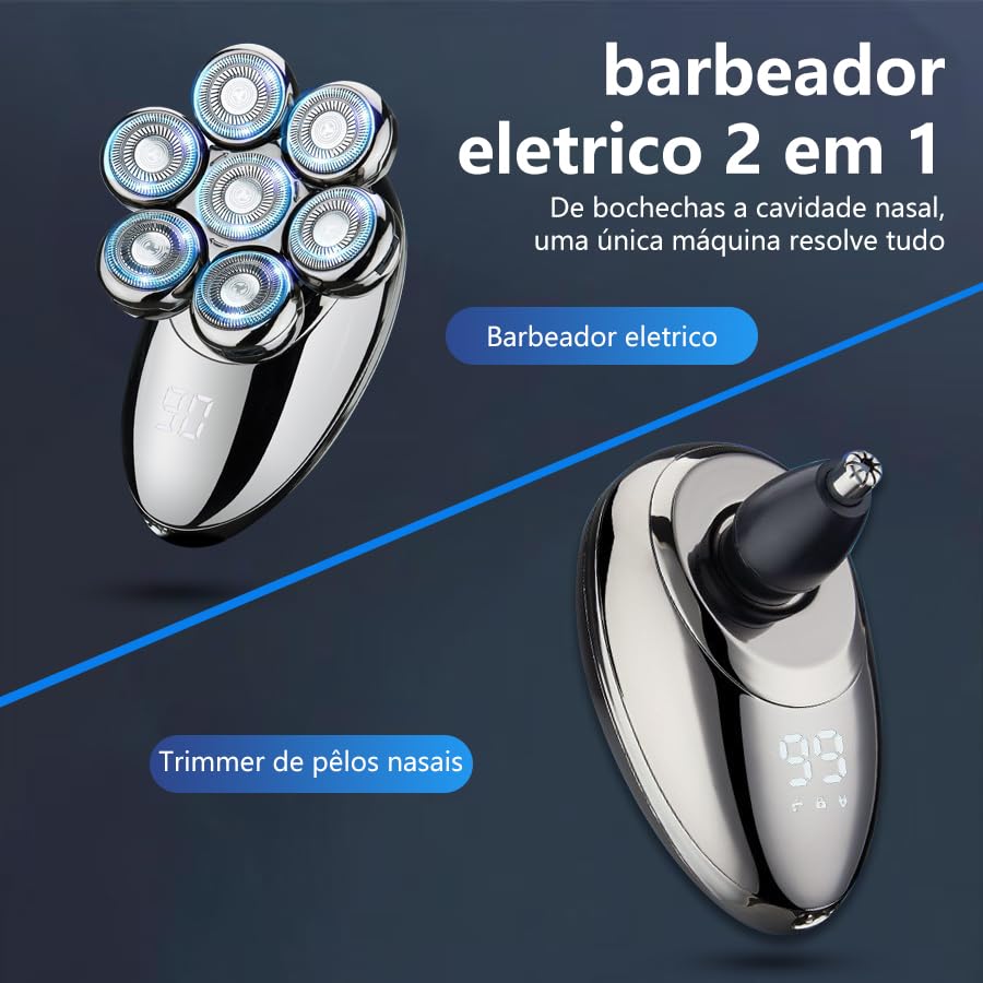 Barbeador Elétrico Masculino com 7 Lâminas Flutuantes 360°, IPX7 à Prova D’água, Máquina de Barbear USB Recarga Rápida, Display LED + Acessórios (Cortador de Pelos Nasais)