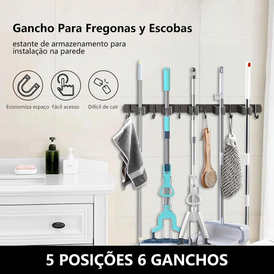 · Organizador Multifuncional: Pode pendurar vassouras, rodos e outros utensílios de limpeza, aproveitando o espaço da parede. Compatível com cabos de 18mm a 28mm de diâmetro.