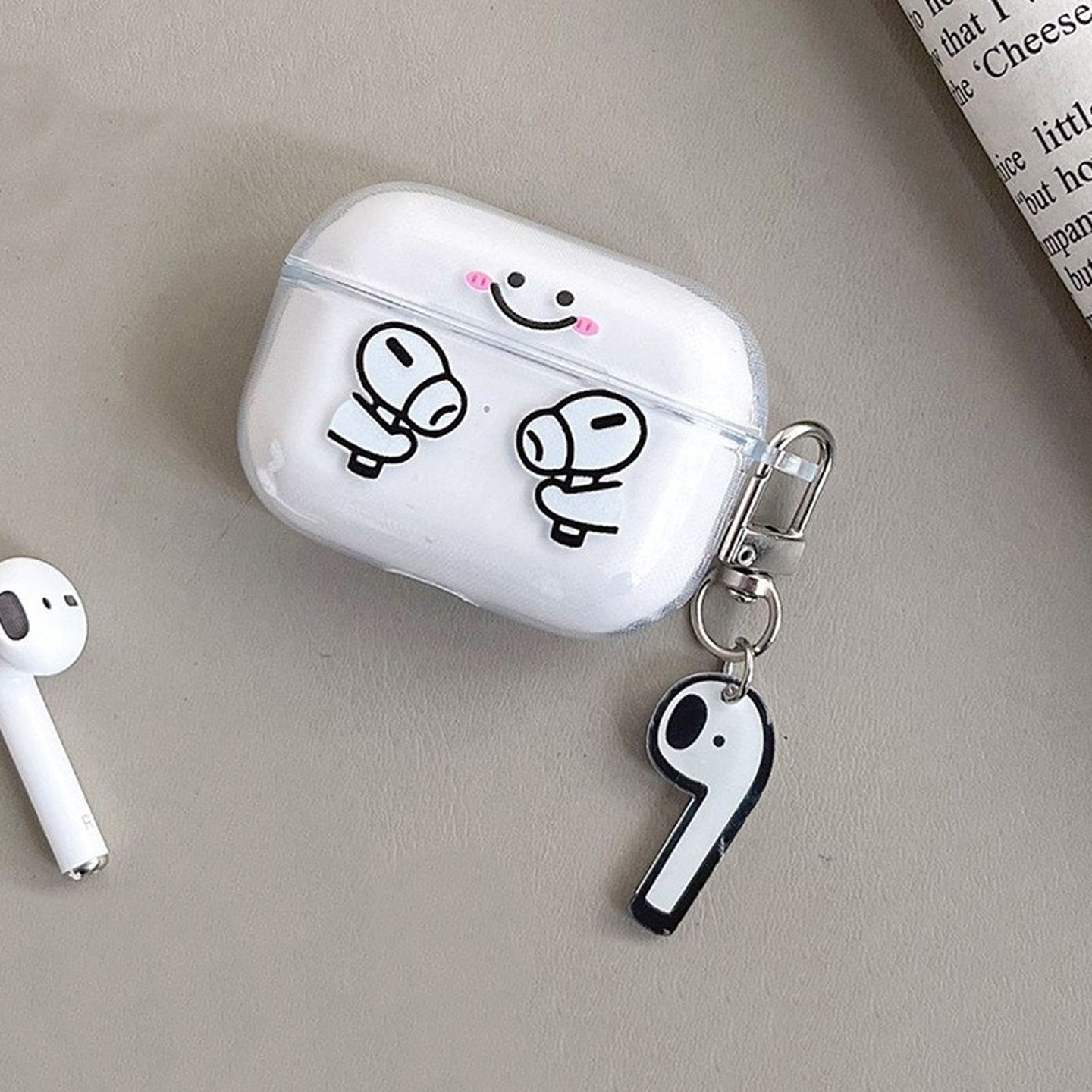 Cute and Creative Suitable for AirPods 1/2 Generation Fun Smiling Face Headphone Protective Cover Apple Pro 3 Generation Transparent Soft Shell