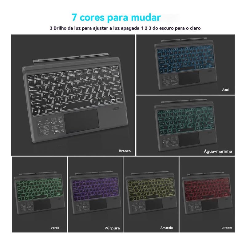 Teclado Bluetooth Magnético Para Surface7/6/5/4/3 com Retroiluminação 2ª Versão Atualizada (Cor bordô)