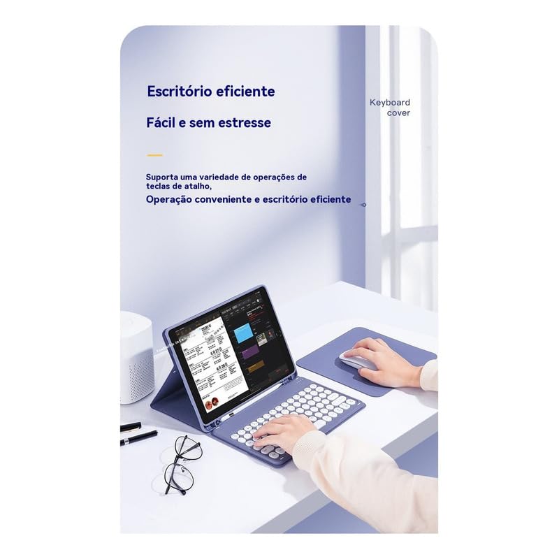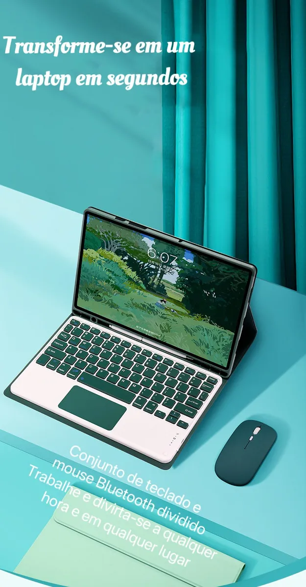 Capa Com Teclado Bluetooth e Mouse Para iPad 9ª 8ª 7ª Geração