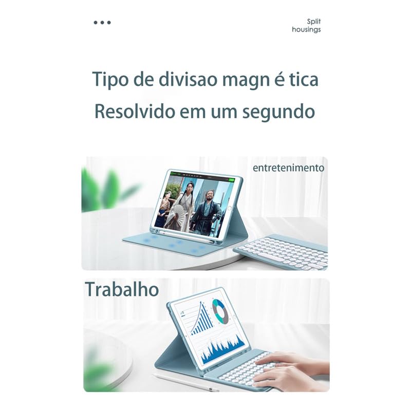 Kit Capa para iPad Air 4/5: Case para Tablet + Teclado com teclas redondas + Mouse