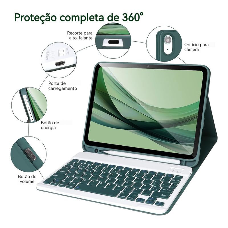 Kit Capa para iPad 10ª Geração/11ª Geração: Capa para Tablet + Teclado com teclas redondas + Mouse