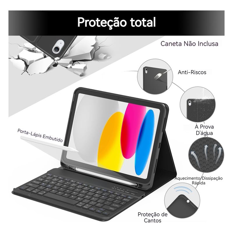Kit Capa para iPad 10ª Geração/11ª Geração: Capa para Tablet + Teclado com teclas redondas + Mouse
