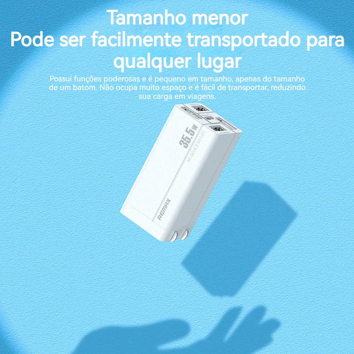 - Plugue Dobrável e Portátil: Design exclusivo com plugue dobrável, fácil de transportar, ideal para viagens, deslocamentos e uso diário. Compatível com tomadas da China, Reino Unido e Europa, além de suportar voltagem global (100–240V).