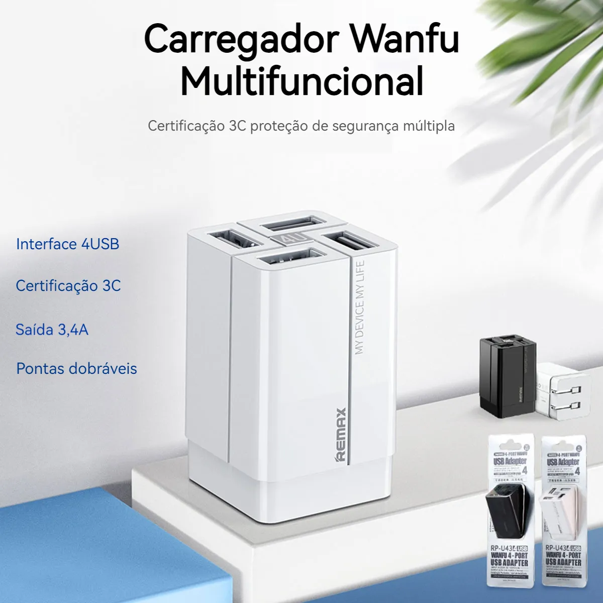 Escolha este carregador rápido dobrável multifuncional 4USB 3.4A e torne suas viagens e rotina diária mais práticas e eficientes. Onde quer que esteja, ele fornecerá carregamento estável, seguro e rápido para todos os seus dispositivos.