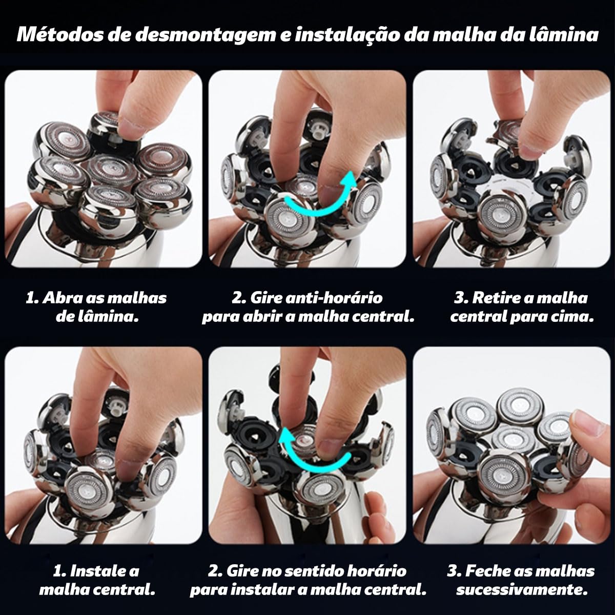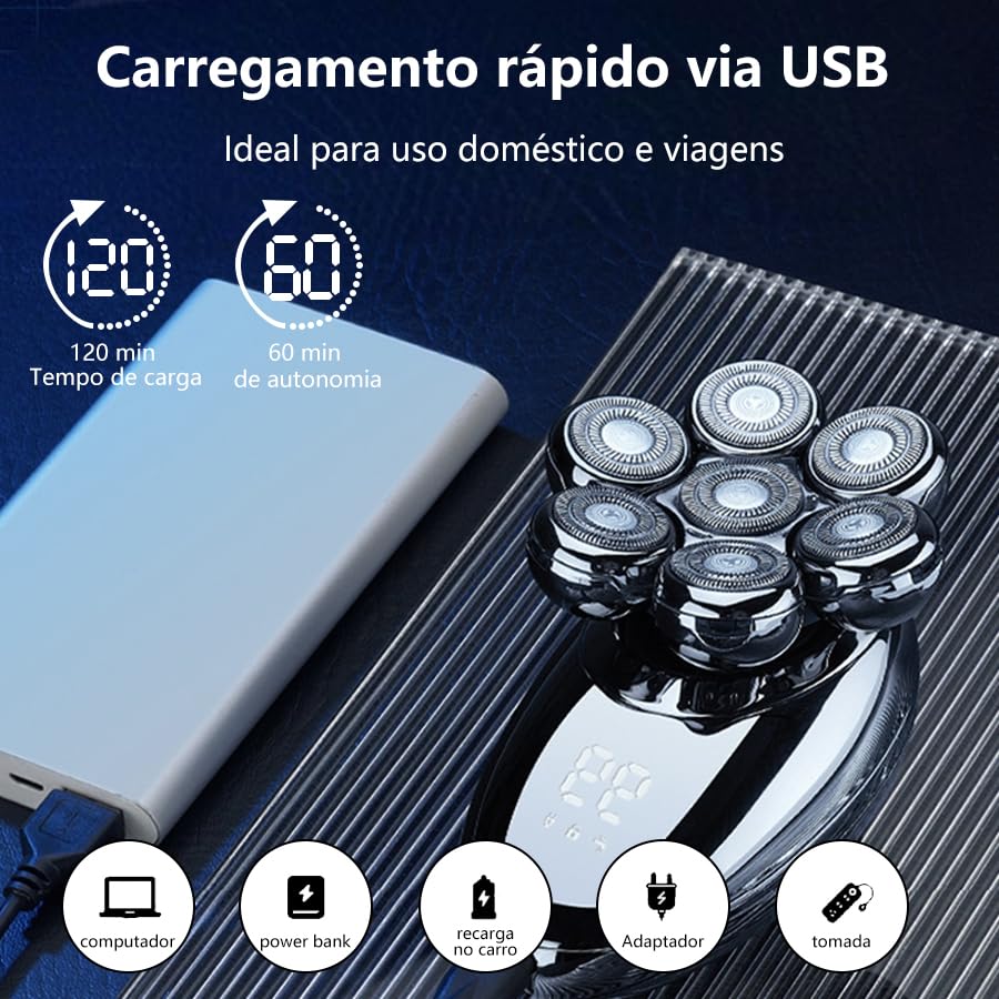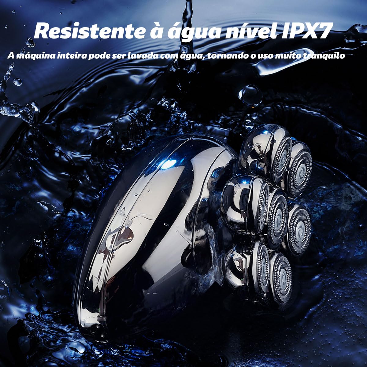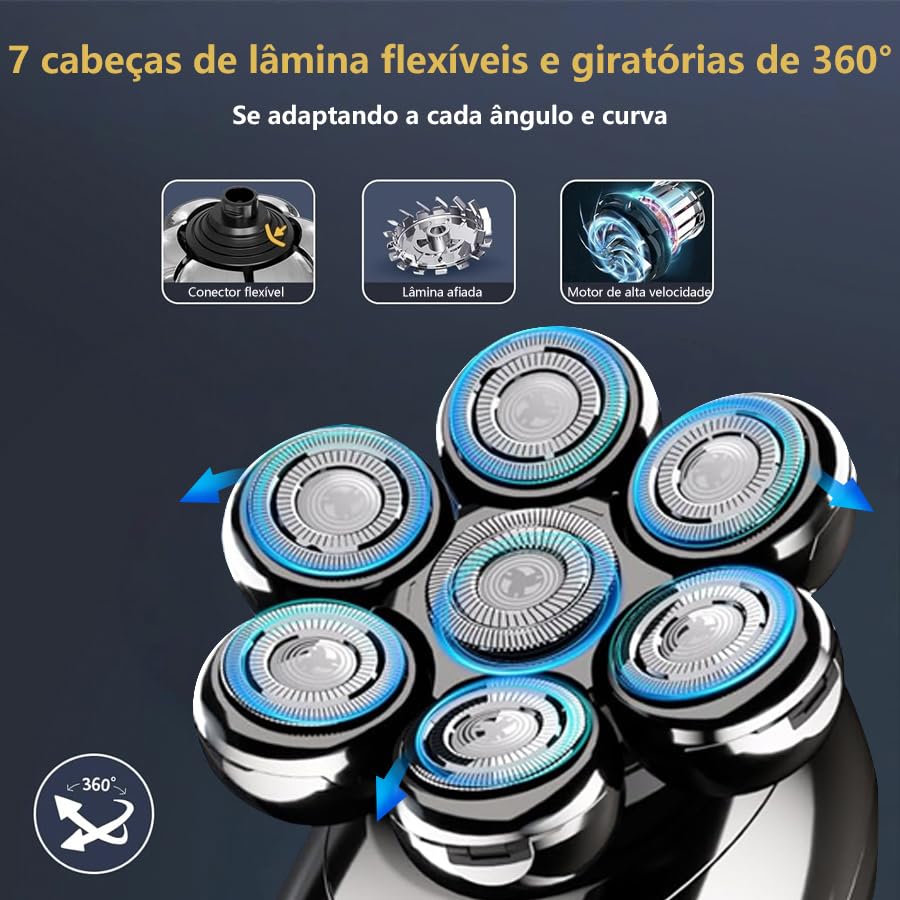 Barbeador Elétrico Masculino com 7 Lâminas Flutuantes 360°, IPX7 à Prova D’água, Máquina de Barbear USB Recarga Rápida, Display LED + Acessórios (Cortador de Pelos Nasais)