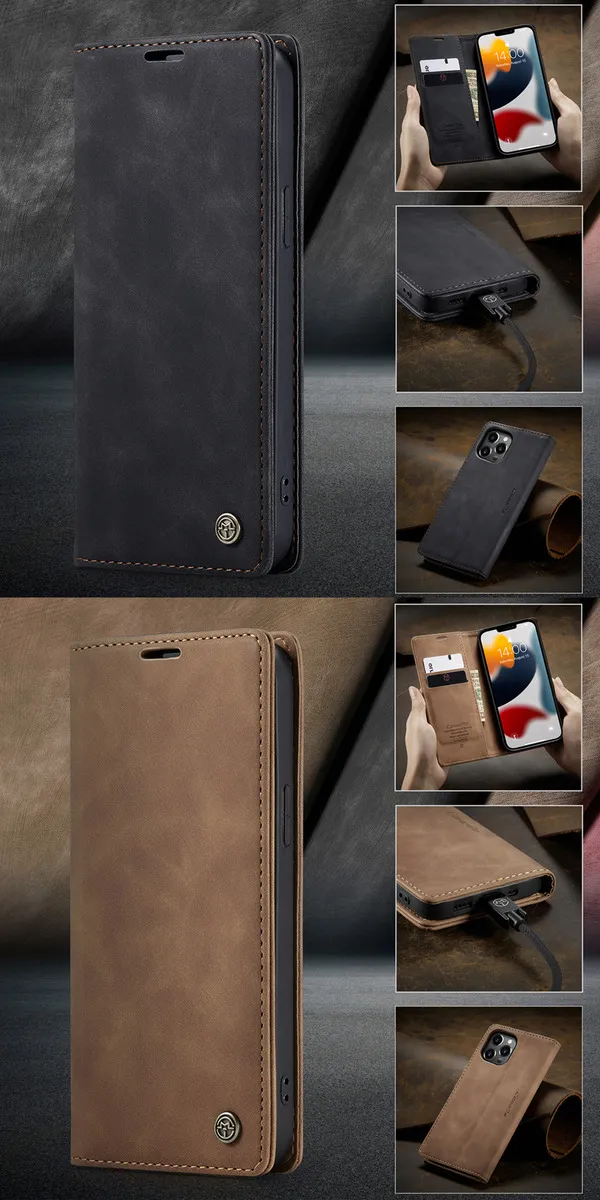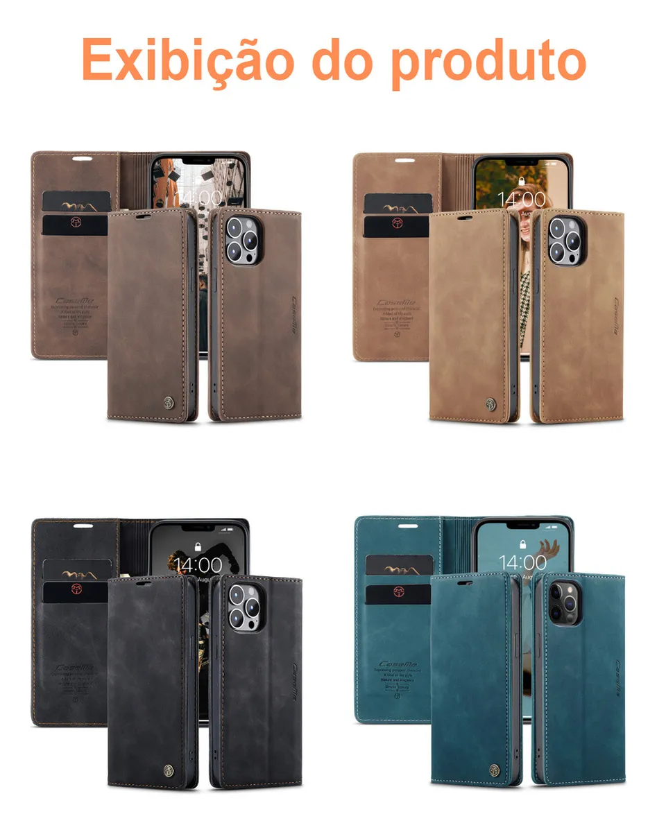 Capa Carteira Celular Magnética Flip De Couro Para iPhone 15