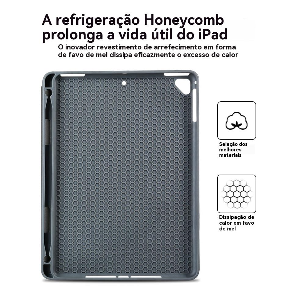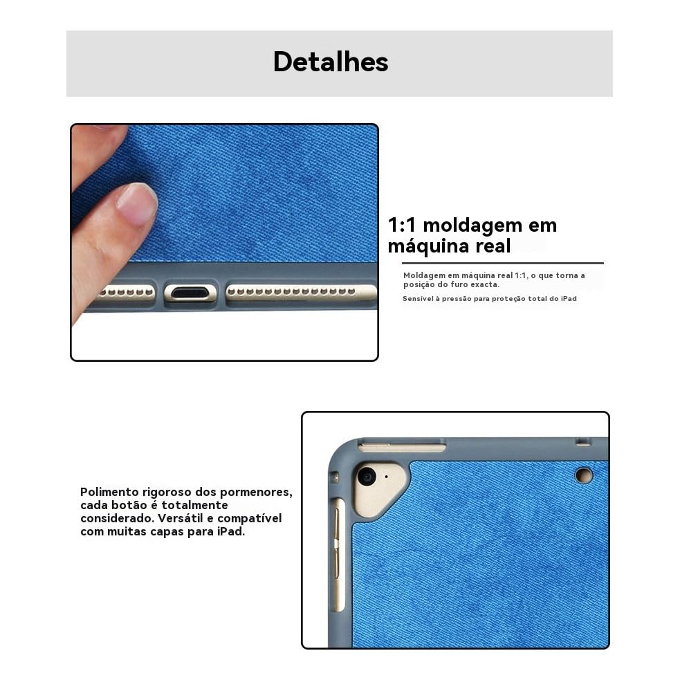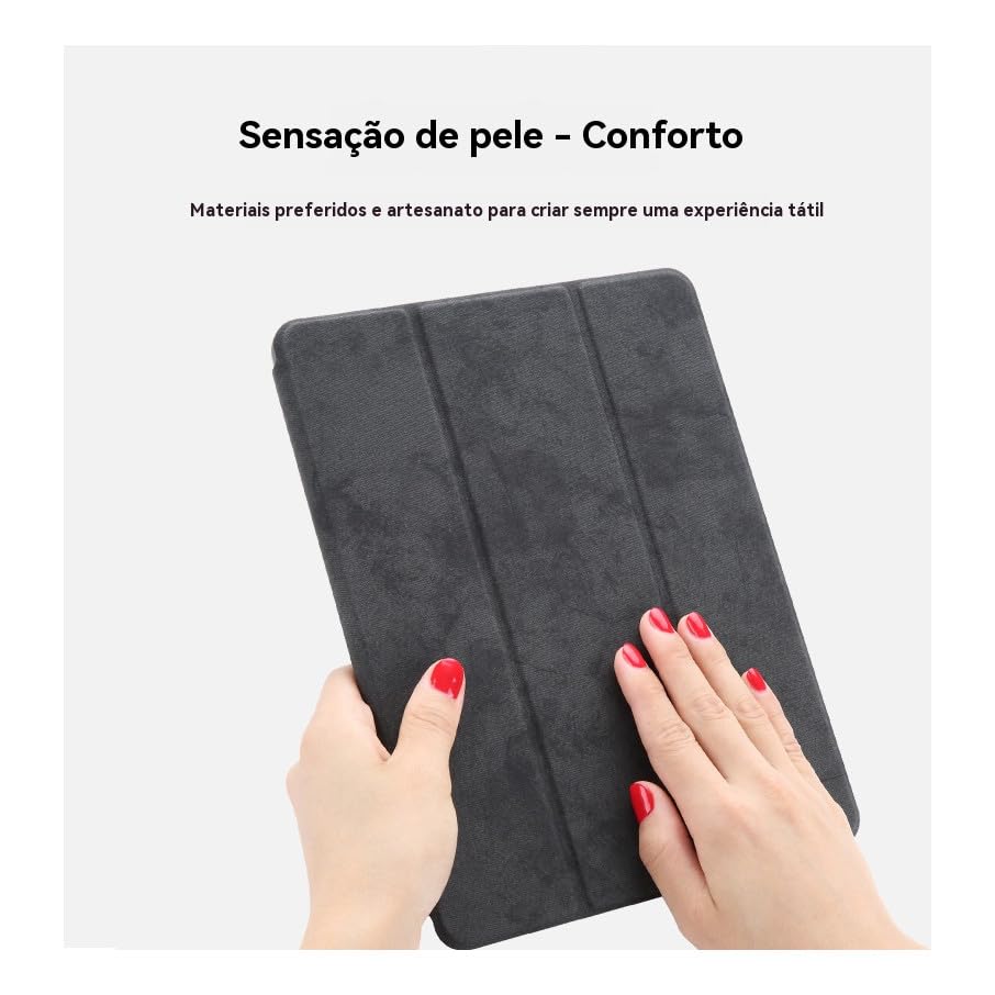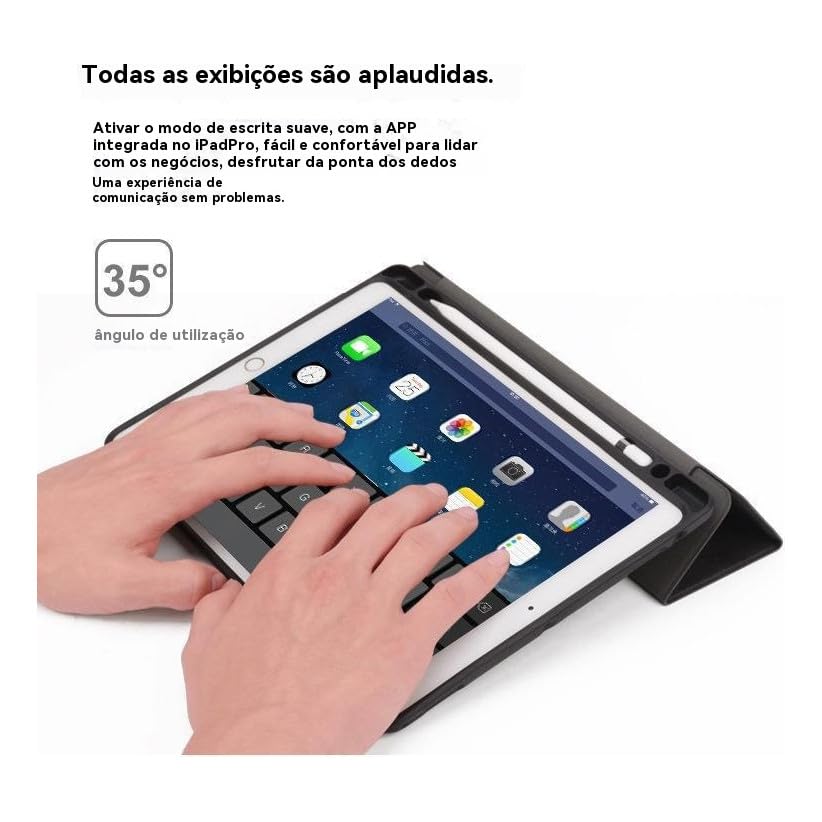 Estojo protetor de caneta com suporte de caneta para iPad – proteção elegante e funcional Compatibilidade Universal Universal Compatibilidade: Compatível com todos os modelos de iPad: 7,9inch, 8,3inch, 9,7inch, 10,2inch, 10,5inch, 10,9inch, 11inch e 12,9inch, garantindo um encaixe perfeito para seu dispositivo específico. Modelos a seguir: Universal Mini 4/5 da marca Ar Ipad 10,5 polegadas 2019 2018ipad/2017ipad/pro 9,7 polegadas/ar2 Polegada Mini Mini 1/2/3universal Ipad Pro/2019 air3 10,5 polegadas 2018 Pro 11 polegadas Características do Produto: Design leve e resistente ao impacto: Estrutura fina, mas robusta, com bordas inclinadas para dispersar eficientemente o impacto e minimizar danos de quedas frequentes. Porta Caneta Escondida: Incorpora um compartimento discreto para guardar e proteger seu Lápis Apple ou outra caneta compatível, mantendo-a acessível sem comprometer o design. Tecnologia Automática Wake Up/Sleep: funcionalidade inteligente que economiza energia, ativando o iPad ao abrir a tampa e colocar em modo espera ao fechar. Proteção total do seu iPad: cobertura total: cobertura total que protege todos os ângulos do seu iPad, com design de borda levantada para proteger sua tela e câmera de superfícies ásperas. Material Premium Premium e Design Artístico: Exterior revestido em tecido de alta qualidade que oferece toque macio e visual elegante, enquanto o interior em silicone protege contra arranhões. Sistema inovador de dissipação de calor: A tecnologia de dissipação de favo de mel mantém seu iPad cool, prolongando a vida útil do aparelho em uso intensivo. Molde preciso 1:1: Garante que todos os botões e portas sejam facilmente acessíveis, com recortes precisos que oferecem resposta tátil impecável.