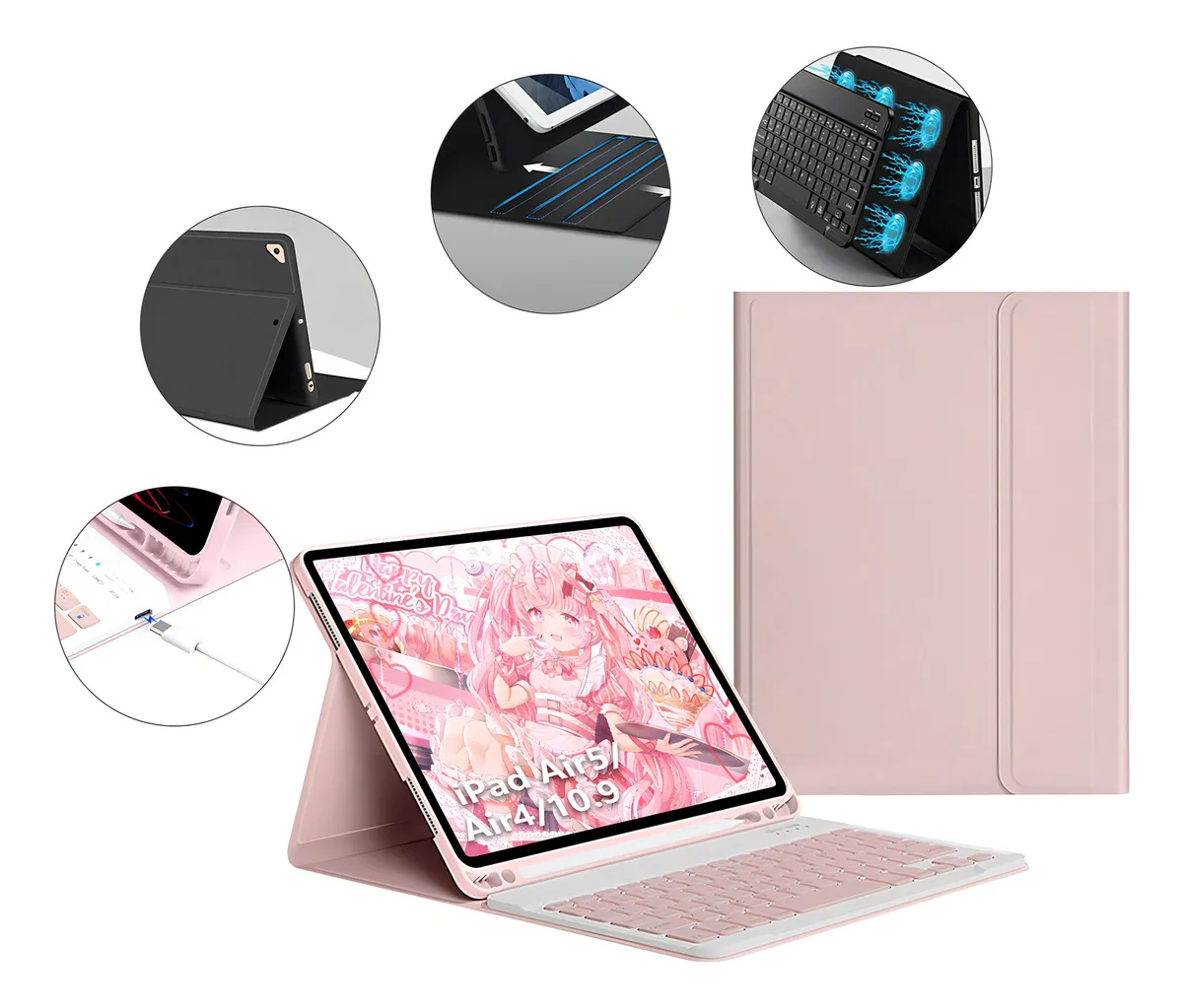 Capa de teclado para Apple iPad compatível conveniente – Capa de teclado sem fio ultrafina para Apple 2022/2020ipadair5/air4/10.9;