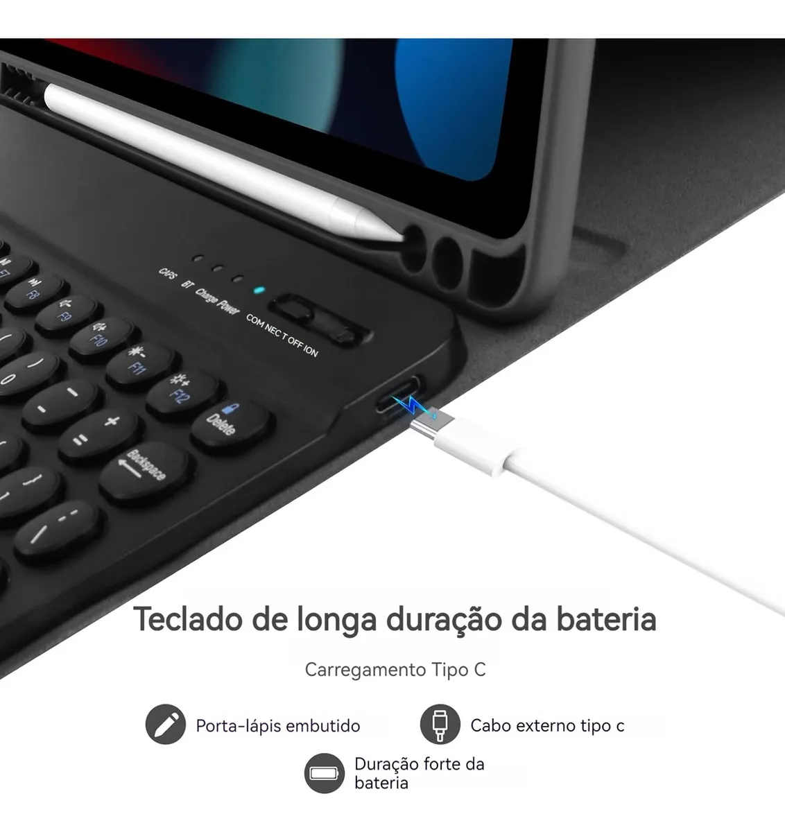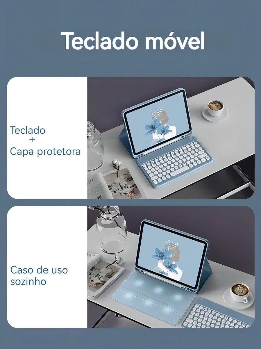 Capa Para iPad Geração 9/8/7 Com Teclado E Mouse Redondo