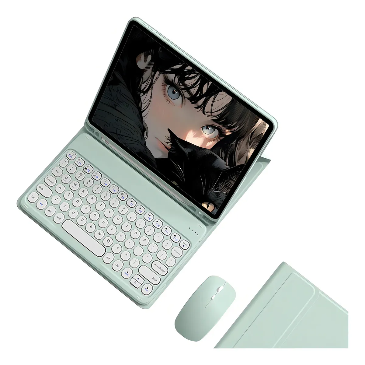 Capa protetora de alta qualidade para iPad 10.2, 2019/2020/2021/air3, 10,5 polegadas/Pro 10,5 polegadas, com teclado redondo e mouse sem fio.
