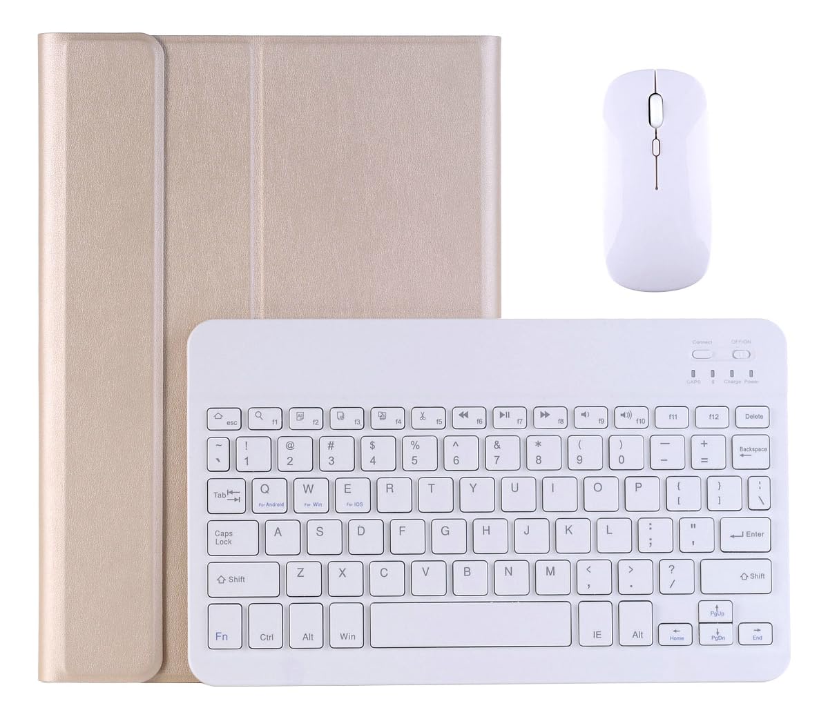 Este produto inclui um mouse sem fio, um teclado magnético e uma capa para tablet e não inclui uma caneta capacitiva! Por favor, confirme se o modelo do seu tablet é consistente com o modelo que você pediu antes de fazer um pedido! —Tipo de teclado— O teclado é americano e não possui uma tecla ç separada. Mude para um teclado português ao usá-lo. —Por favor, note antes de usar— Antes de usar o produto, carregue totalmente o teclado e o mouse (cerca de duas horas). Use um carregador Android comum ao carregar. Usar um carregador de carga rápida para carregar o teclado e o mouse fará com que o teclado e o mouse falhem devido à corrente excessiva. . —Como saber se o teclado está totalmente carregado— Durante o carregamento, as luzes de carregamento do teclado piscarão ou ficarão vermelhas e, quando estiverem cheias, as luzes ficarão verdes ou desligarão automaticamente. –Método de conexão– Digite um método de conexão de teclado: 1. Pressione o botão na lateral do teclado para “ON”; 2. Pressione e segure as teclas “FN+C” para ativar o modo Bluetooth do teclado; 3. Conecte o teclado Bluetooth do tablet. Método de conexão de teclado tipo 2: 1. Pressione o botão na lateral do teclado para “ON”; 2. Clique no botão “Conectar” ao lado do switch e a luz WiFi do teclado piscará; 3. Conecte o teclado Bluetooth do tablet. Método de conexão do mouse: 1. Carregue totalmente o mouse; 2. Pressione o botão na parte traseira do mouse ao lado do ícone do Bluetooth; 3. Pressione e segure o botão do meio na frente do mouse; 4. Conecte o tablet via Bluetooth.
