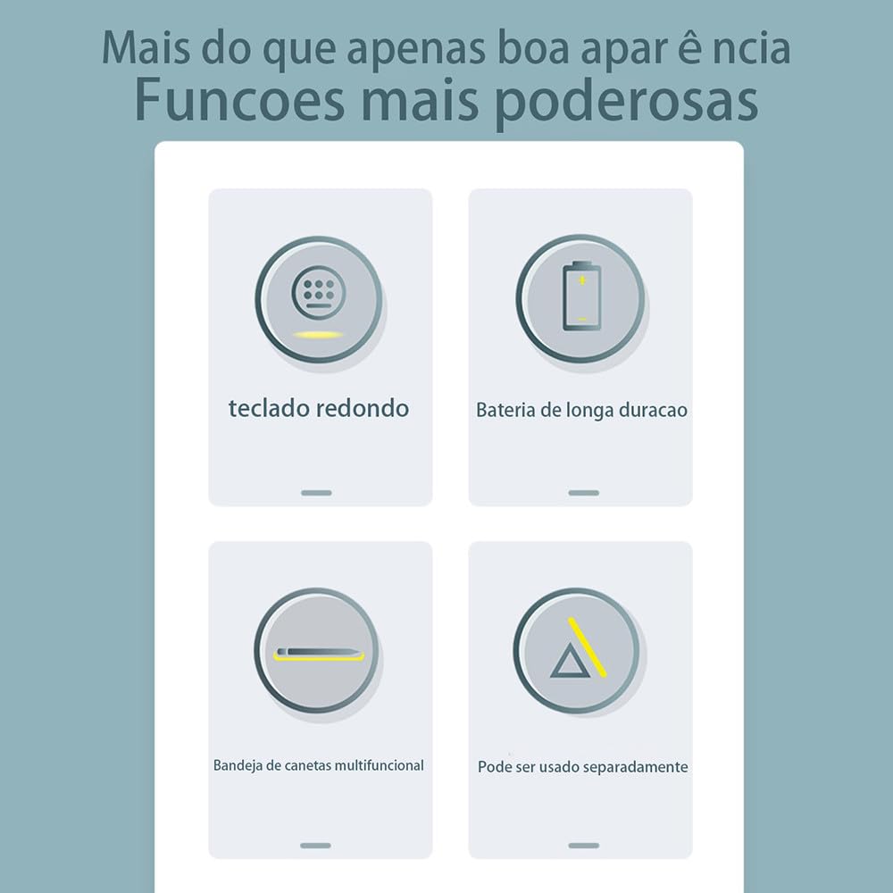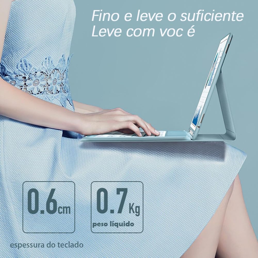 Lembrete: Não use protocolo de carregamento rápido ao carregar o teclado. Use o cabo de carregamento que fornecemos ou um cabo de carregamento comum. A corrente excessiva do protocolo de carregamento rápido pode causar falha no IC, tornando o teclado inutilizável. Método de conexão Bluetooth do teclado: primeiro carregue totalmente o teclado e, em seguida, pressione o botão ao lado do teclado para “ON”, pressione e segure as teclas “FN + C” para ativar o modo Bluetooth do teclado e, em seguida, ative o Link. Descrição do produto Visão geral Apresentando uma capa protetora feita sob medida de alta qualidade para o seu iPad Air 4/5 (10,9 polegadas). Este estojo se destaca pelo seu design em cores sólidas e minimalistas, mecanismo de fixação magnética e teclado ultrafino, oferecendo não apenas proteção completa, mas também praticidade e estilo ao seu aparelho. Design minimalista e cores sólidas O design de cor sólida e minimalista se encaixa perfeitamente no seu dispositivo e no seu estilo pessoal. Seja no escritório ou em movimento, você pode facilmente exibir seu gosto único. Fixação Magnética e Vários Modos O design exclusivo de fixação magnética permite que você alterne facilmente entre diferentes modos de uso. Seja assistindo vídeos, digite ou desenhando, você pode se adaptar facilmente a qualquer situação. Design leve Feito com materiais leves e construção refinada, o design geral é fino e fácil de transportar com você. Teclado sensível ao toque sensível ao toque O teclado embutido oferece excelente desempenho de digitação e tem uma espessura ultrafina de apenas 0,6 cm, garantindo comodidade sem ocupar espaço extra. Conclusão da conclusão O estojo protetor de alta qualidade que oferece utilidade e estilo, deixando seu iPad Air 4/5 (10,9 polegadas) mais versátil em qualquer ambiente.
