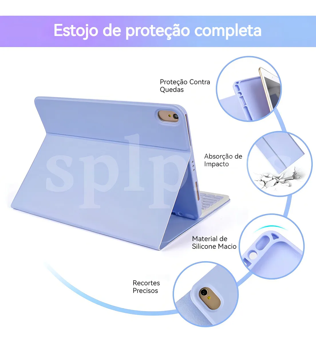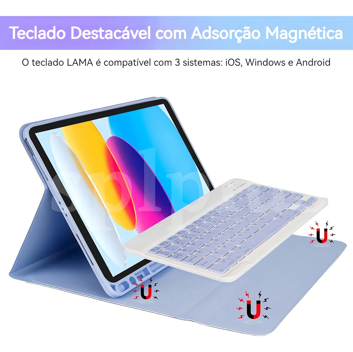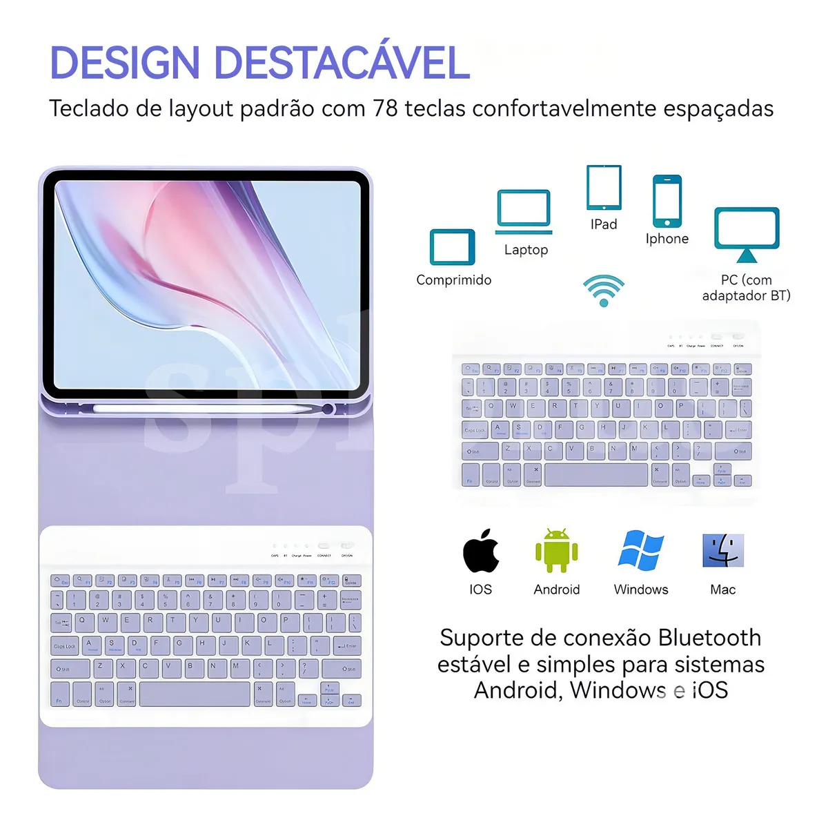 Capa Bluetooth sem fio com teclado – O design superfino adiciona proteção máxima com volume mínimo (0,38 pol.), proporcionando uma experiência de digitação suave e confortável. A parte inferior do teclado é projetada magneticamente para fácil remoção e torna seu iPad mais estável. O suporte ajustável mantém seu iPad no modo paisagem com segurança. Teclado sem fio disponível. Estojo de teclado dura mais de 100 horas (tempo de espera de 30 dias)!