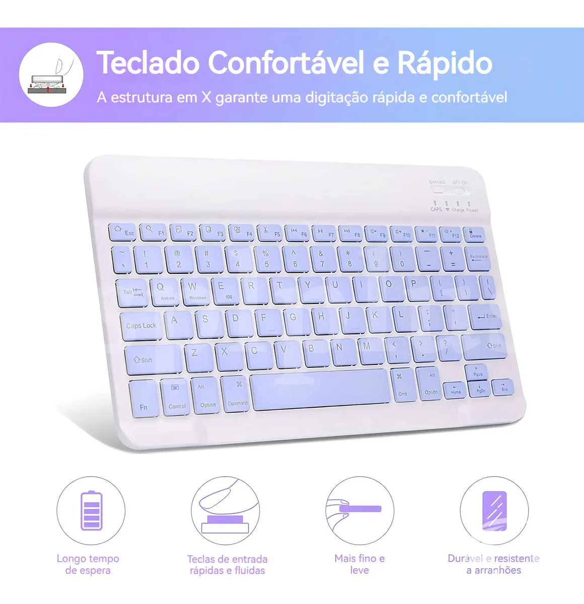 7. Bateria de teclado recarregável embutida e cabo de carregamento USB incluído