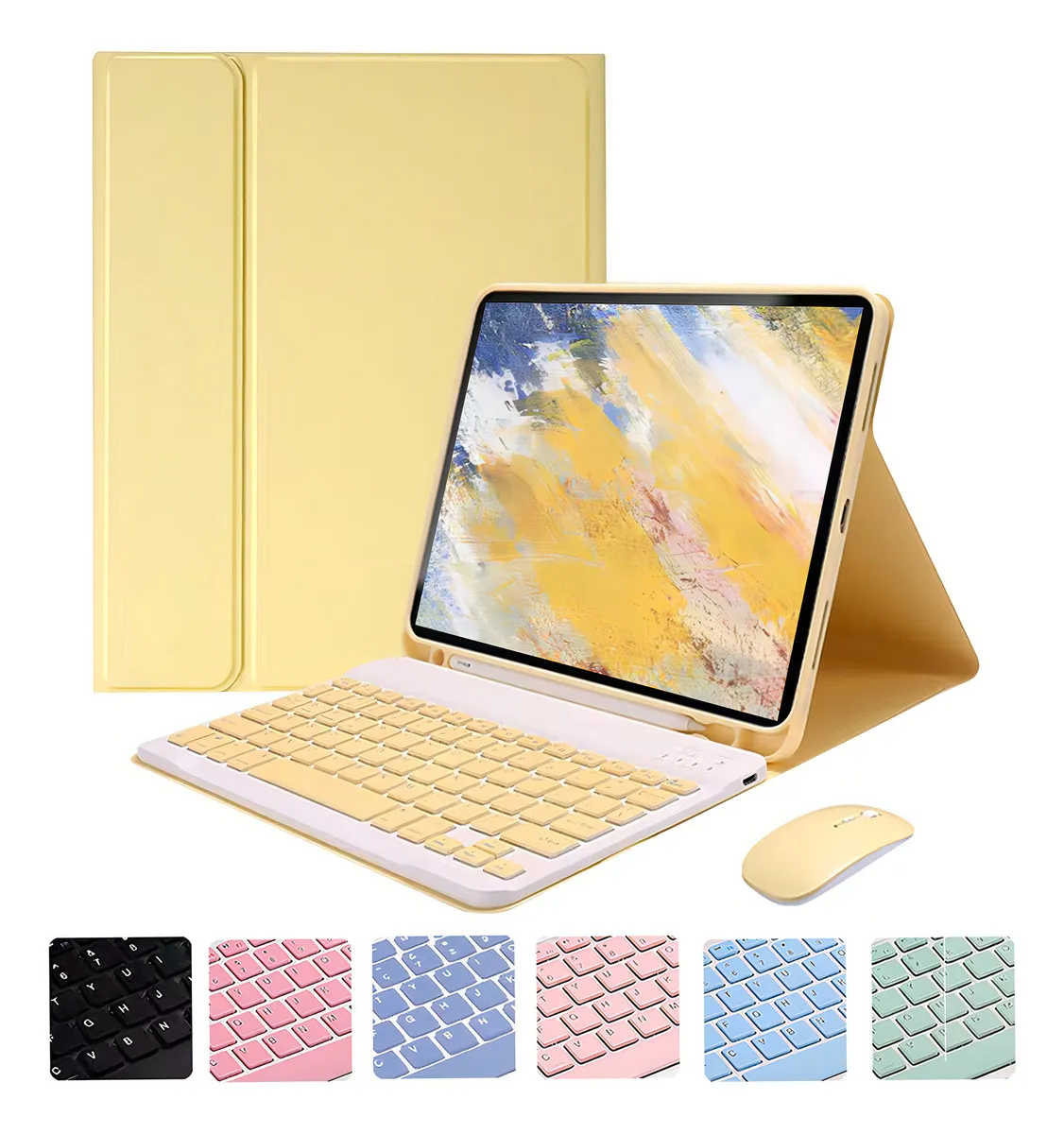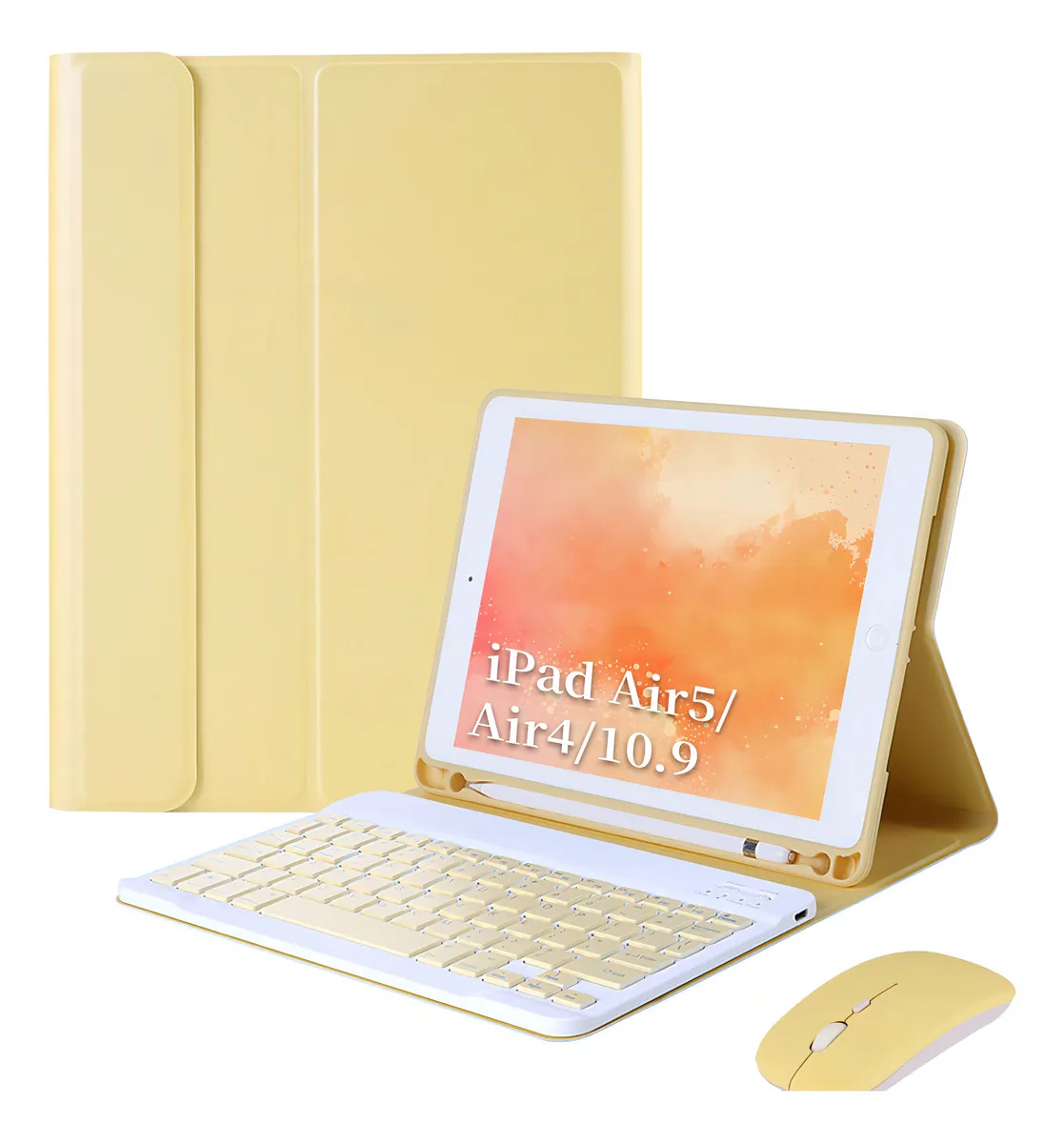 Conjunto De Teclado E Mouse Bluetooth Para Capa iPad Air 4/5 Cor Amarelo Limão + Teclado Amarelo + Mouse De Carregamento Amarelo Bluetooth
