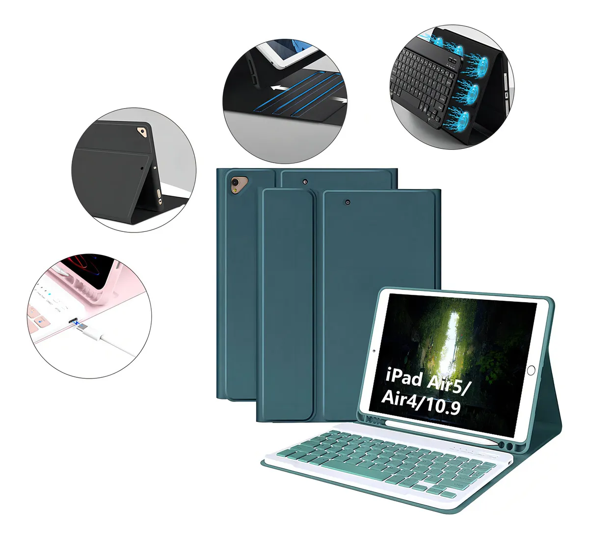 Este estojo multifuncional foi desenvolvido exclusivamente para iPad Air 5 e iPad Air 4, oferecendo um teclado sem fio ultrafino, suporte ajustável e um estojo de transporte resistente. Ideal para uso diário, trabalho ou viagens, seu design inteligente transforma seu iPad em uma verdadeira estação de trabalho.