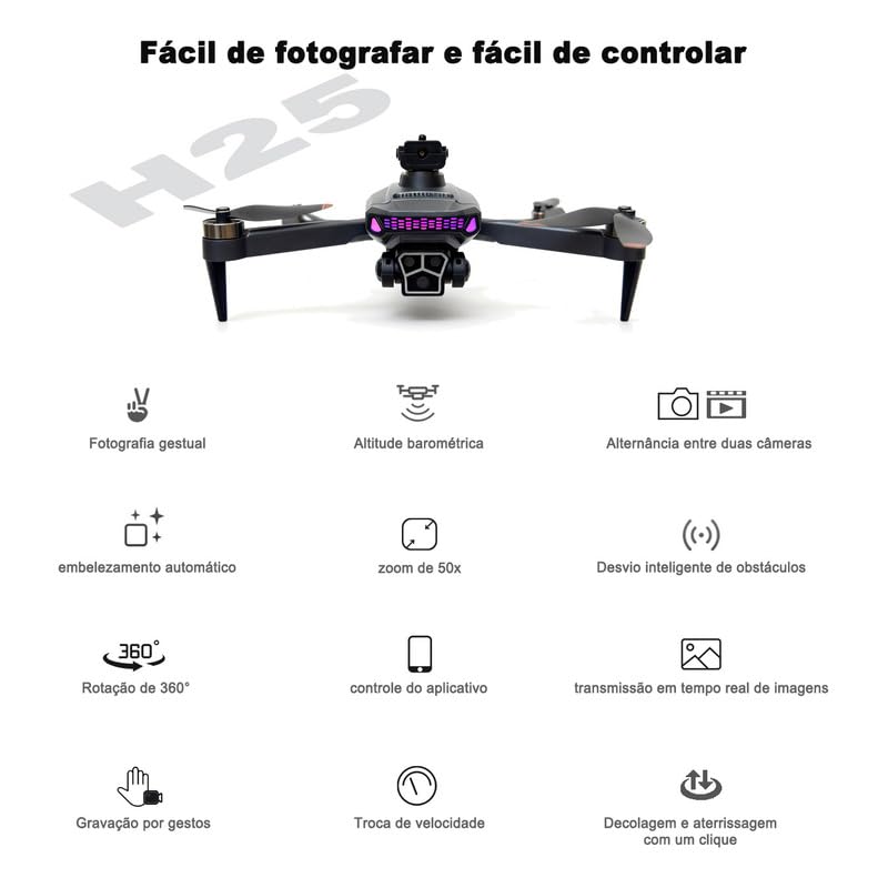 Dimensoes do Drone: 27 x 27 x 8 cm