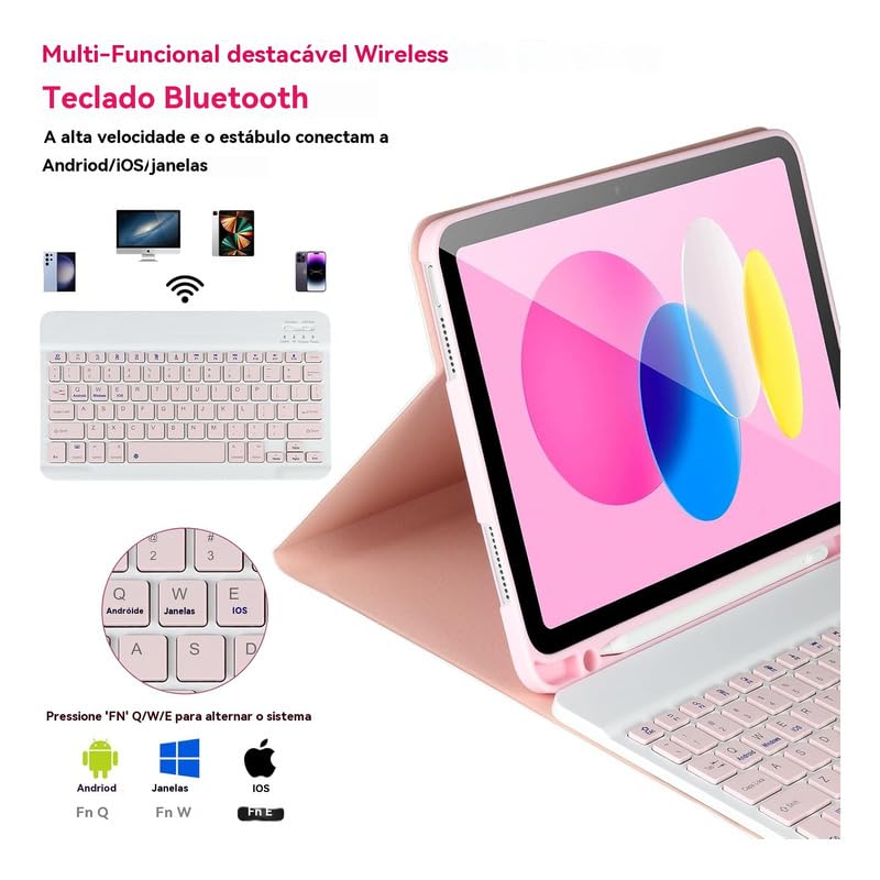 Pressione e segure as teclas “FN+C” para ativar o modo Bluetooth do teclado;