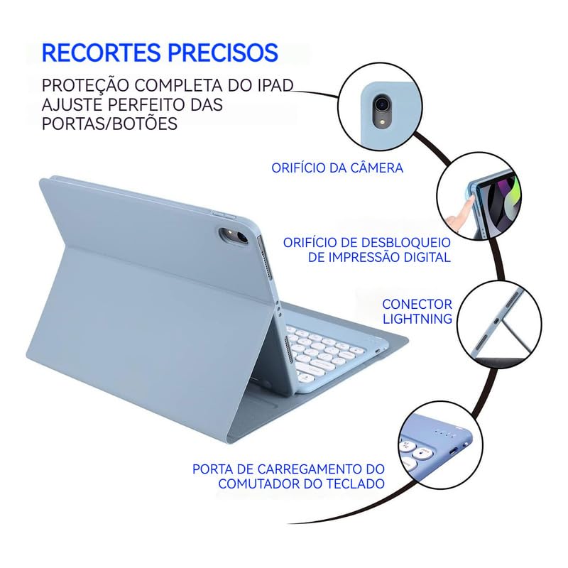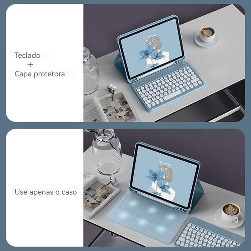 Kit Capa para Samsung Tablet A7 10.4: Capa para Tablet + Teclado com teclas redondas + Mouse