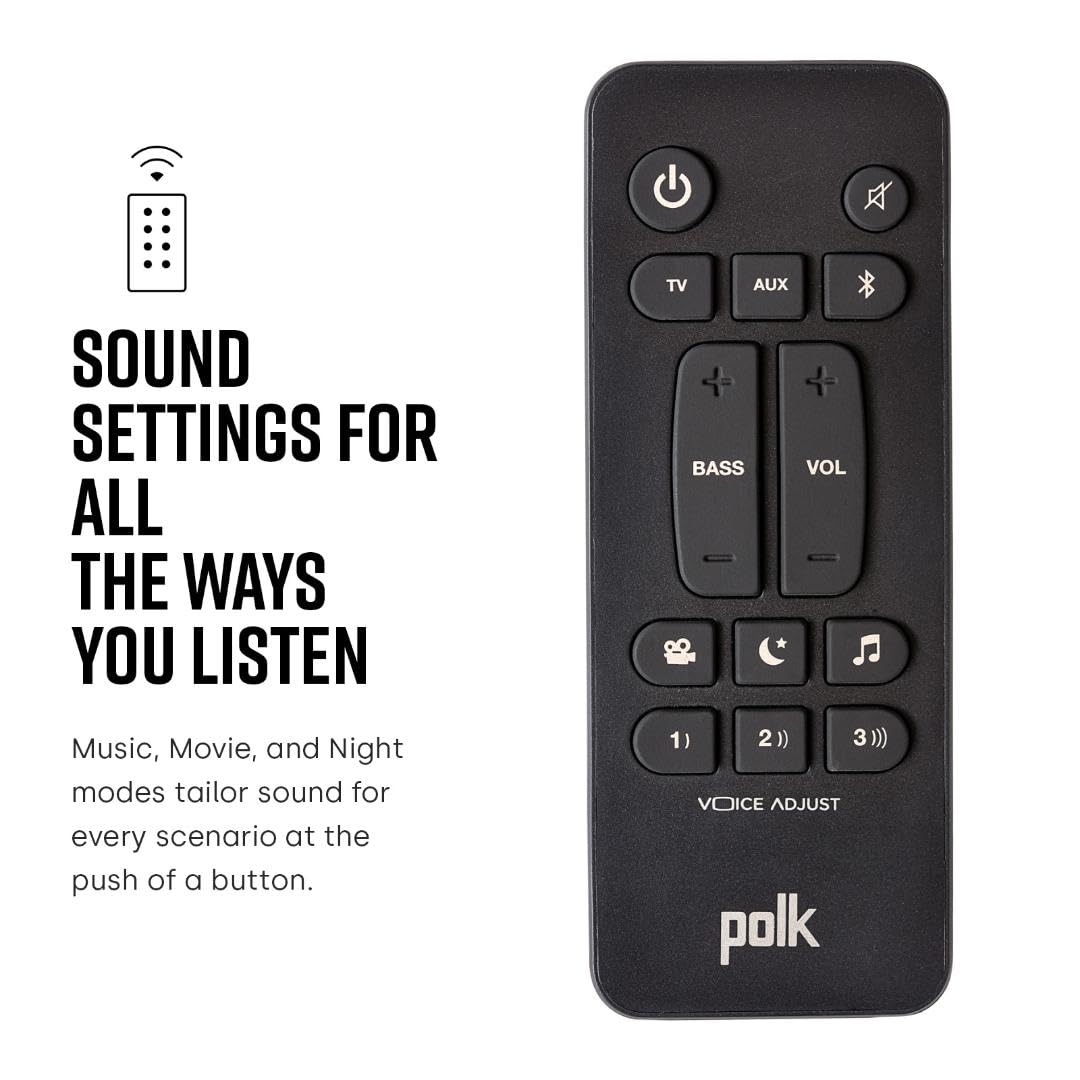 · TECNOLOGIA EXCLUSIVA VOICEADJUST DA POLK – Juntamente com o canal central do S4, ela permite ajustar os níveis de voz para ouvir diálogos claros sem perder nenhuma palavra. Para máximo impacto, controle a soundbar Bluetooth com subwoofer usando a Tecnologia de Ajuste de Graves.