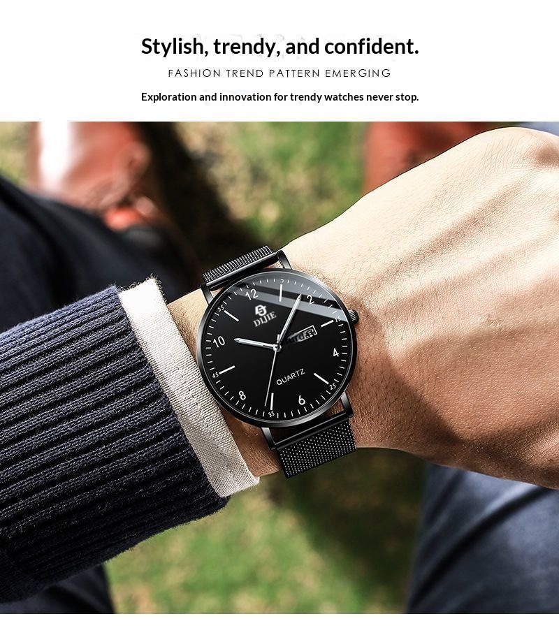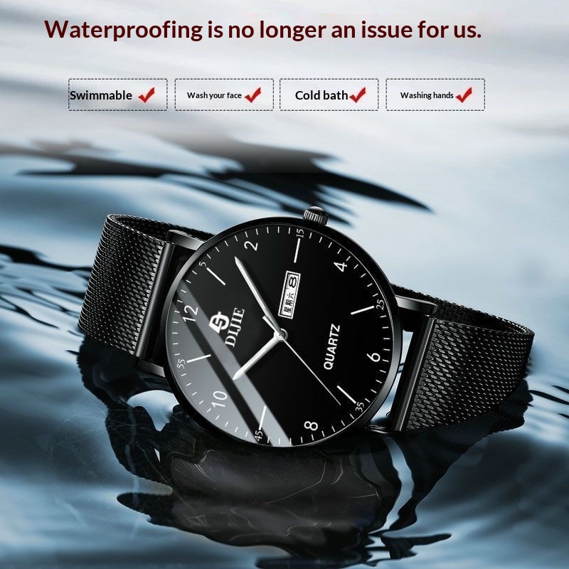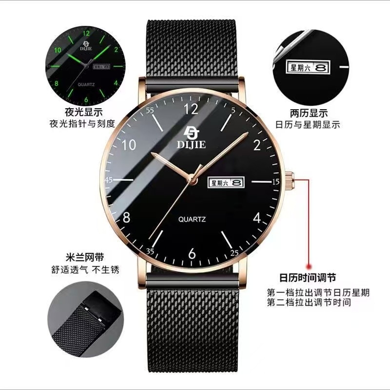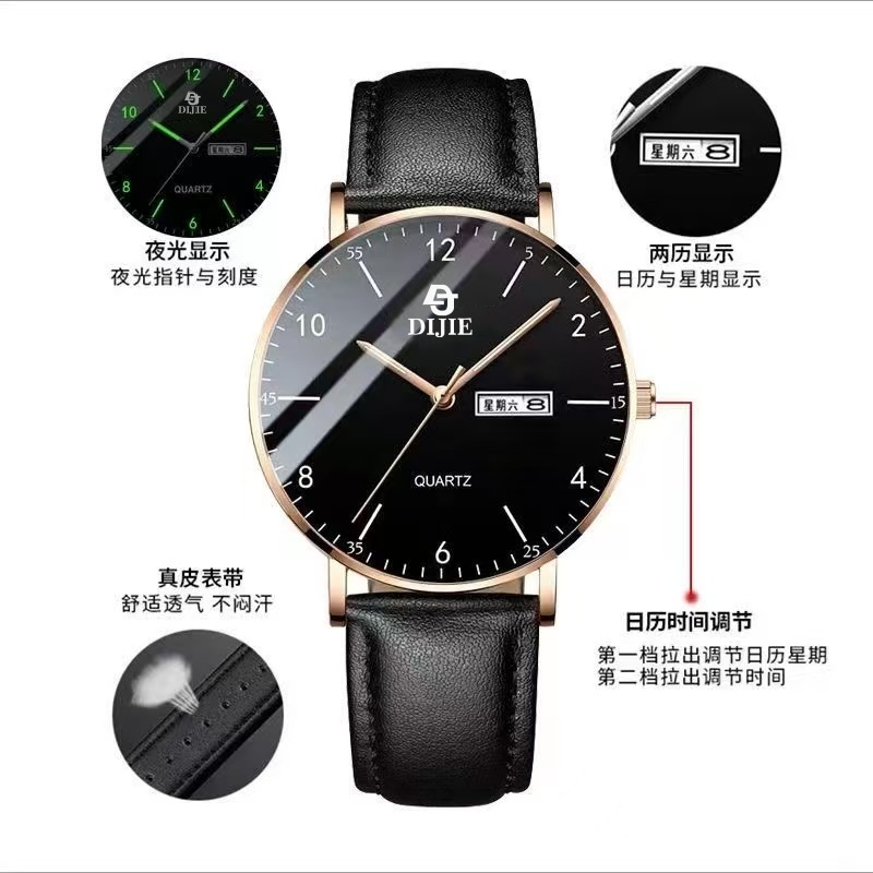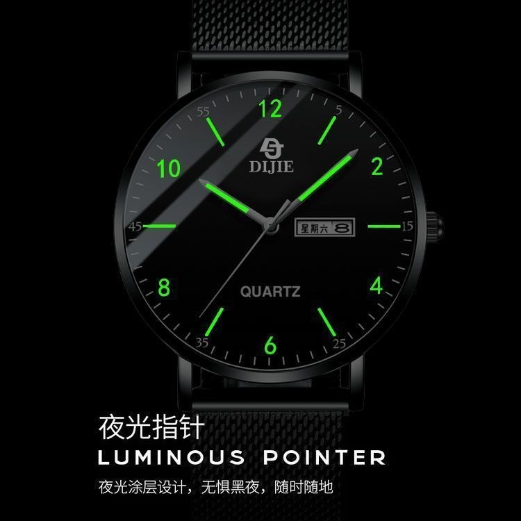 Silent Quartz Watch Trend Luminous Korean Version Trendyy Fashion Dual Calendar Student Junior High School Student Watch Watch Men’s Watch
