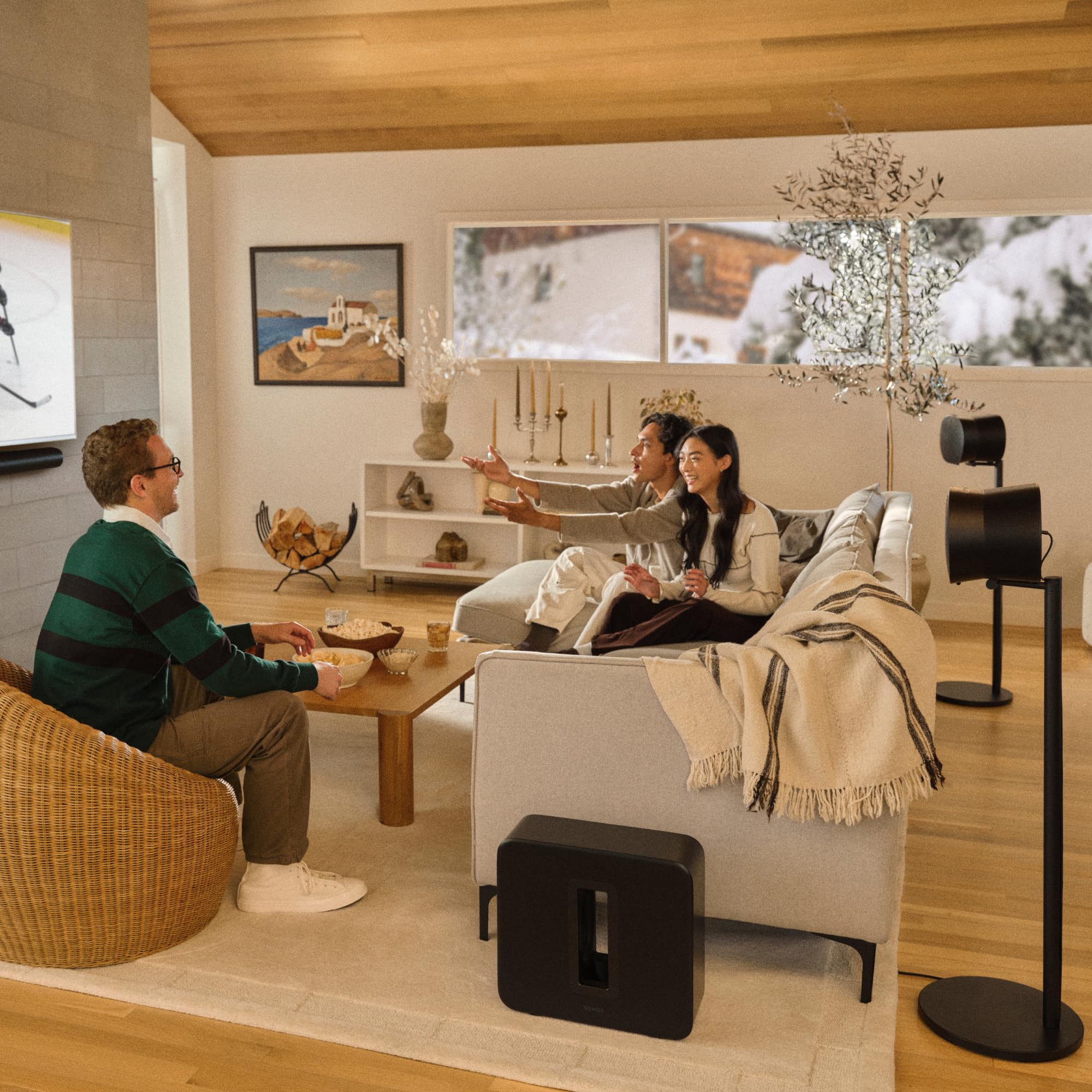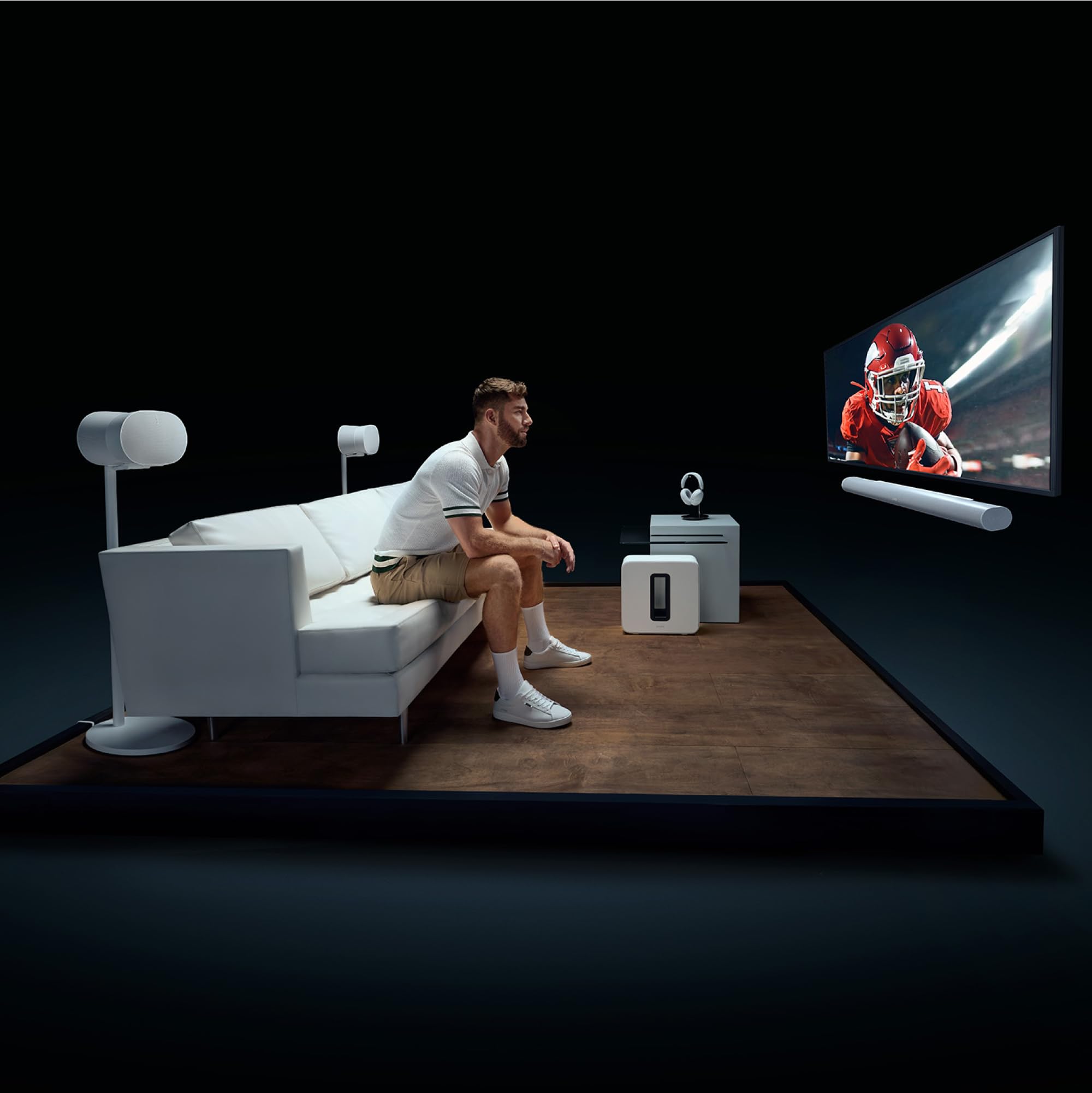 Experimente um som surround multicanal surpreendente ao emparelhar dois alto-falantes com o Sonos Arc ou Beam (2ª geração). Impulsionado pelo Dolby Atmos, os canais laterais e superiores de cada produto criam um palco sonoro completo para envolvê‑lo na história.