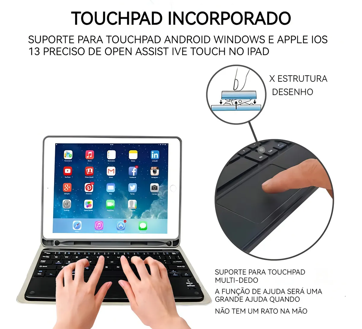 O conceito de design desta capa foi criado para atender a todas as suas necessidades, seja para trabalho ou entretenimento, otimizando o uso do seu iPad ao máximo.