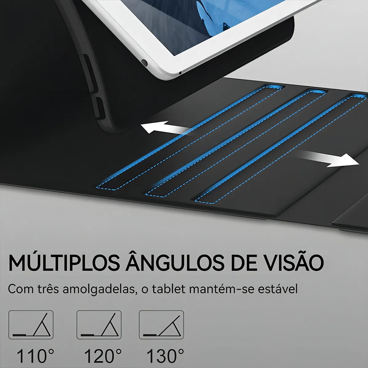 O design modular apresenta um teclado removível que transforma seu iPad em um laptop ou seu livro favorito em menos de um segundo. No modo portátil, o design inteligente ajusta-se facilmente a qualquer ângulo confortável que melhor lhe convier. Perfeito para trabalhar, escrever ou assistir a vídeos no trabalho, na escola, em viagens e em casa.