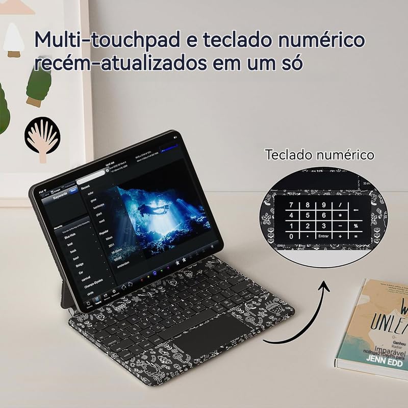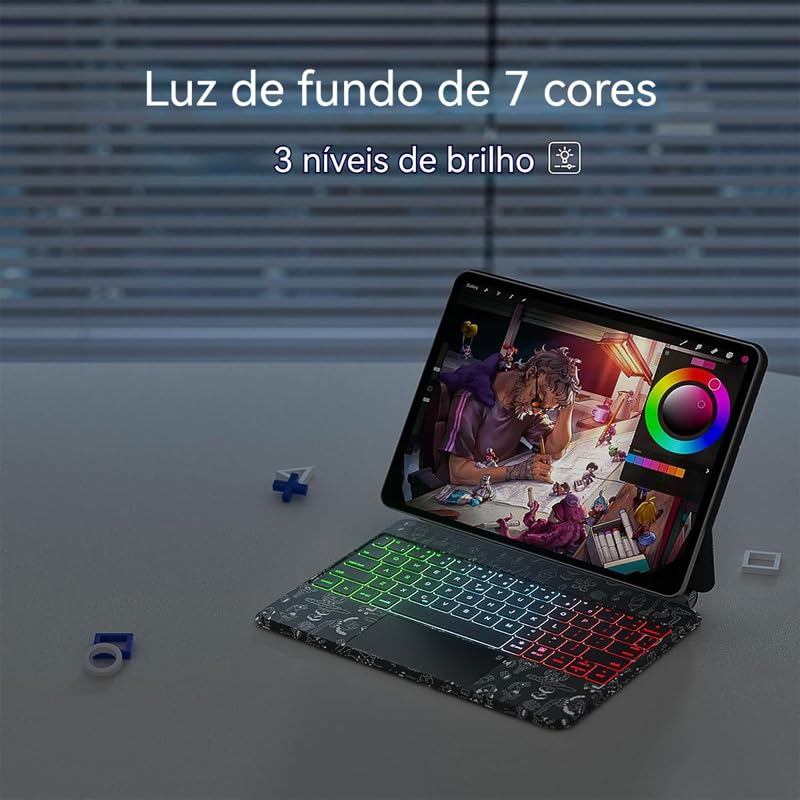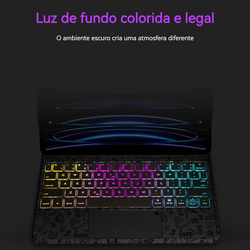 –Este produto passou pela certificação Anatel –Modelos compatíveis: –2022 iPad air5 10,9 polegadas (A2588 A2589 A2591) –2021 iPad air4 10,9 polegadas (A2316 A2324 A2325 A2072) –2022 ipad Pro11 polegadas 4ª geração (A2759 A2761 A2762 A2435) –2021 ipad Pro11 polegadas 3ª geração (A2377 A2301 A2459 A2460) –2020 ipad Pro11 polegadas 2ª geração (A2228 A2230 A2231 A2068) –2018 ipad Pro11 polegadas 1ª geração (A1980 A1934 A1979 A2013) –Lembrete importante: O chip de carregamento geralmente resfria em 2 a 3 meses quando não utilizado e pode ficar inutilizável após desconectar o cabo de carregamento. Não se preocupe, basta carregá-lo por mais tempo! Uma vez que o chip seja reativado, tudo voltará ao normal. –Esta capa de teclado Bluetooth sem fio de toque magnético para iPad Pro 11 e para iPad Air 5/4 combina tecnologia avançada com design elegante, sendo ideal para usuários que procuram estilo e eficiência.